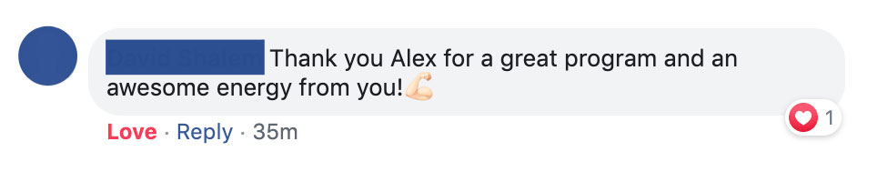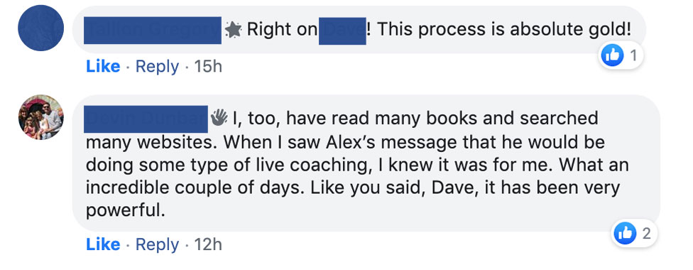 Thank you so much Alex, you are the man I've learned so much from this and you put this in a whole new world of perspective and the crazy thing is that it actually works.