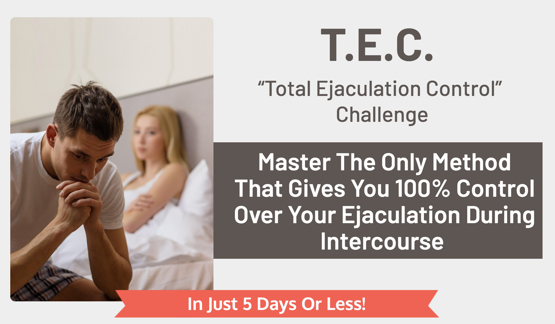 Imagine what’s possible in the way you relate to women, in your sex life, or in your marriage, when you have total control over your ejaculation… in only 5 days.